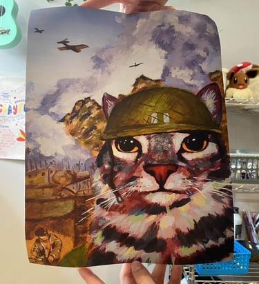 Want a custom poster of your pet or a silly image? I got you! Fill out the form below to enter my commission waitlist. Once it's your turn, I'll email you to start the process!